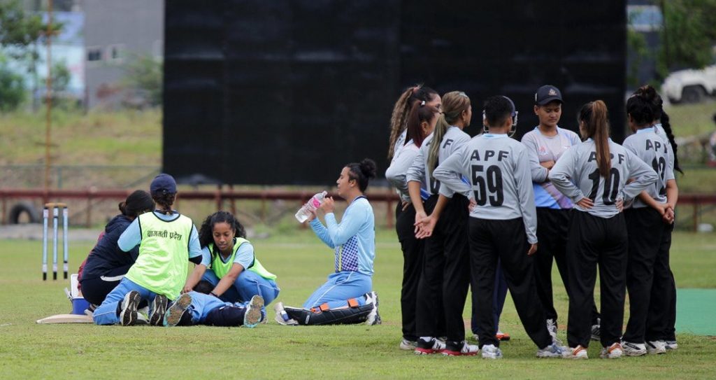 त्यसअघि नेपाल एपिएफ क्लबले नवौं राष्ट्रिय खेलकुद अन्तर्गत महिला क्रिकेट तर्फ समूह ए को खेलमा बागमती प्रदेशलाई पराजित गरेको थियो । एपिएफले बागमतीलाई ४ विकेटले पराजित गरेको हो । बागमतीले प्रस्तुत गरेको ९० रनको लक्ष्य एपिएफले अन्तिम ओभरको पहिलो बलमा पूरा गर्यो । पहिलो खेलमा सुदूरपश्चिमलाई पराजित गरेको बागमती भने दोस्रो खेलमा पराजित हुन पुग्यो ।