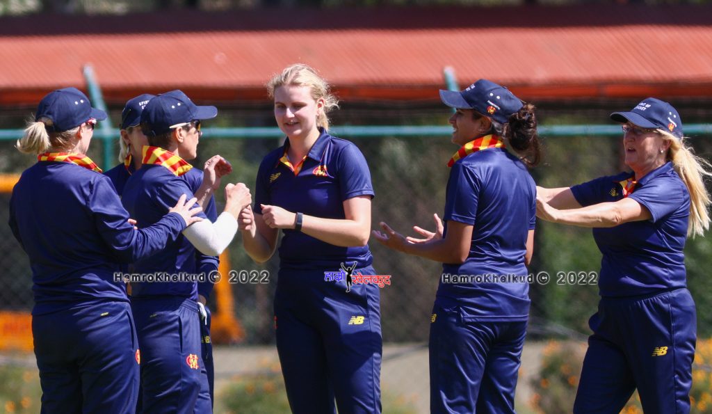 सृष्टी जैसीले ४ बलमा १ चौकासहित ५ रन बनाइन् । सामइराले ६ बलमा १ चौकासहित ६ रनमा आउट भइन् । एमसिसीको लागि रिया रावल, इसाबेल गुर्नी, राहेल पोटर र जोलेन फोस्टरले एक एक विकेट लिइन् ।