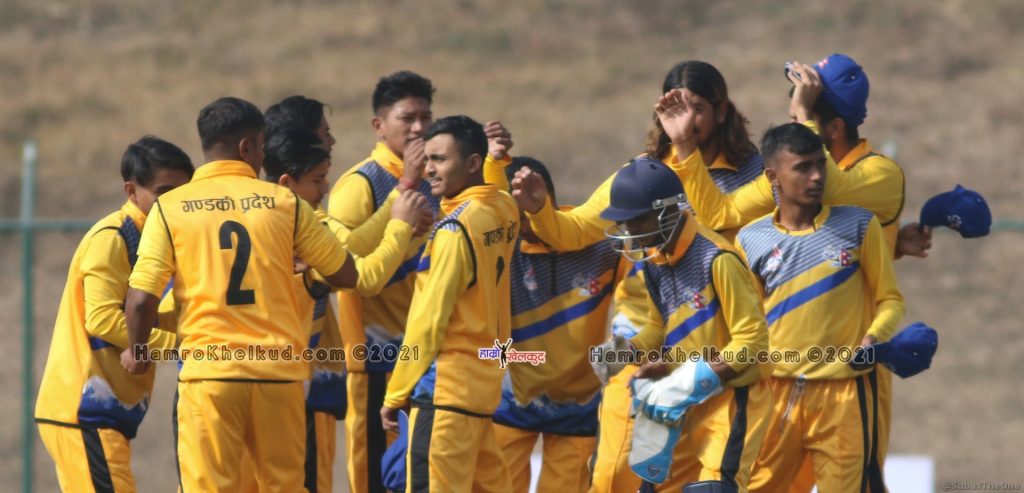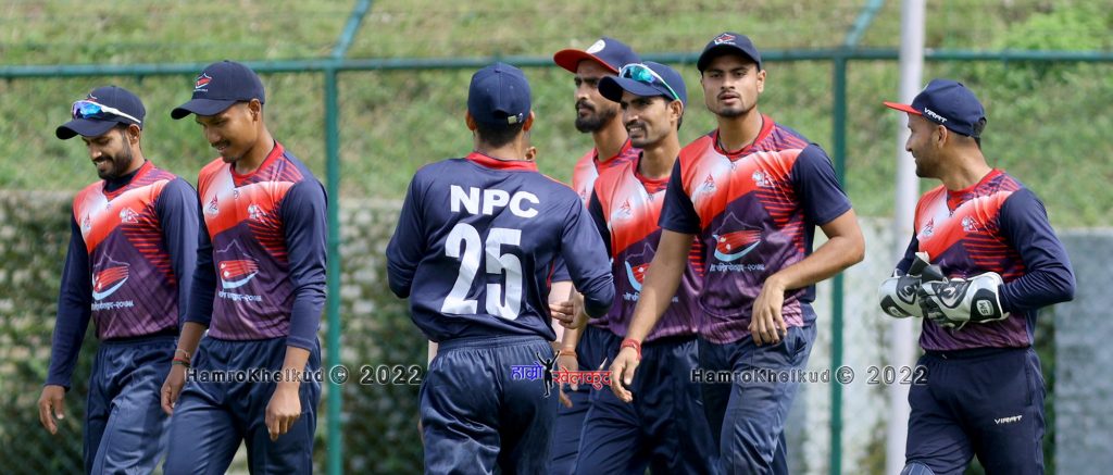 ज्ञानेन्द्र मल्ल (कप्तान), पृथु बाँस्कोटा, रित गौतम, विवेक रानामगर, दुर्गेश थापा (विकेटकिपर), आशुतोष घोईरोइया, ईशान पाण्डे, नन्दन यादव, रामनरेश गिरी, प्रतिश जि.सी., रिजन ढकाल, सूर्य तामाङ, तिलकराज भण्डारी र सोनु सोनु देवकोटा ।