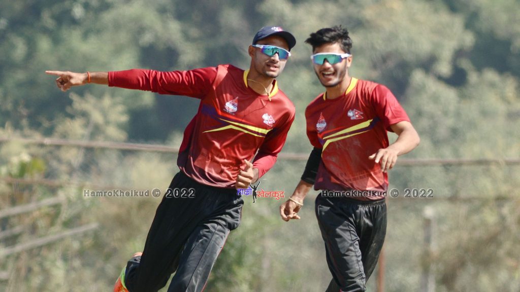 विकेटकिपर दुर्गेश थापाले ३९ बलमा ४ चौका र १ छक्कासहित ३२, ओपनर आषुतोश २२, रित गौतम ६, ईशान पाण्डे शून्य, सूर्य तामाङ १७, नन्दन यादव १, प्रतिश जि.सी १५ र रामनरेश गिरीले १० रन बनाए ।