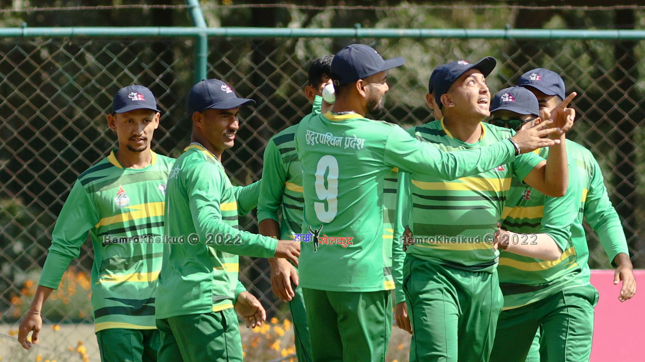 जितको लागि २ सय ८३ रनको बलियो विजयी लक्ष्य पछ्याएको सुदूरपश्चिम २९.४ ओभरमा १ सय १३ रनमा अल आउट भयो । सुदूरका बसन्त खत्रीले ३७ बलमा २ चौका र १ छक्कासहित सर्वाधिक २५ रन बनाए । गजेन्द्र बोहरा शून्य, गजेन्द्र भण्डारी १७ र टेक रावल १५ रनमा आउट भए ।