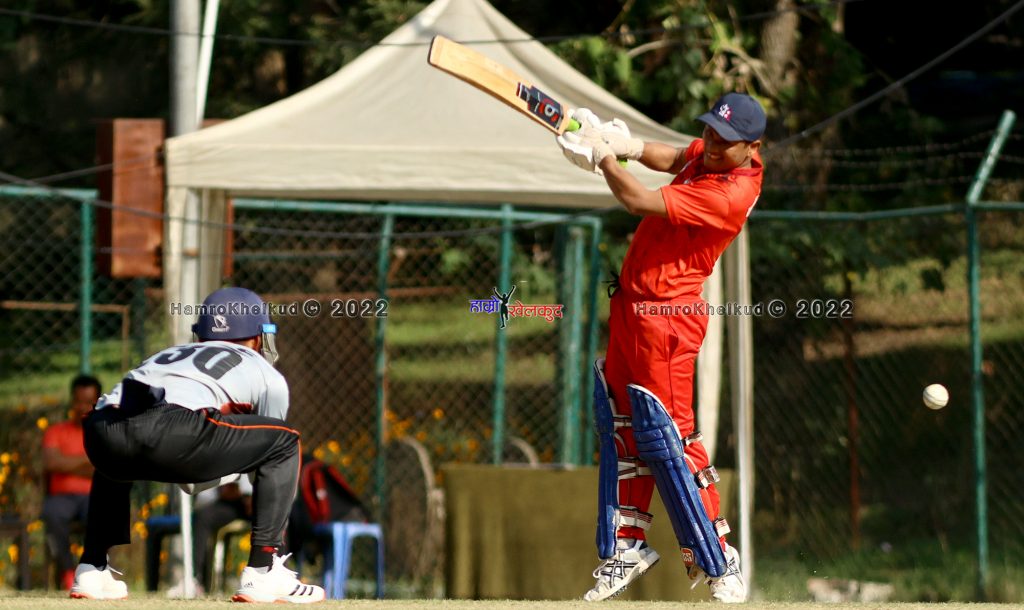 सुवास ऐरले २२ बलमा ५ चौका प्रहार गर्दै २४ रनमा आउट भए । कप्तान रविन्द्रजंग शाही ७, विपिन रावल शून्य, विपिन शाही २, हिमान्शु शाही ३८ बलमा १ चौकासहित १२, दीपेन्द्र रावत ८, प्रकाश जैशी ९, दिवान पुन १ र अनुज चनारा शून्यमा आउट भए ।