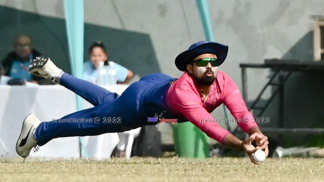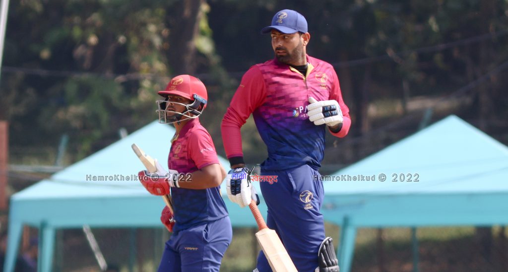 टियु एण्डबाट आएका सोमपाल कामीले युवा ओपनर वृत्य अरविन्दलाई शून्यमा बोल्ड गरे । सोमपालको इन स्वींग बल वृत्यले रिड गर्न सकेनन् । गुलशन झाले चौथो ओभरको पहिलो बलमै कप्तान सिपी रिजवानलाई ४ रनमा आसिफ शेखबाट क्याच गराउँदै १६–३ को सानदार सुरुवात दिलाए ।
