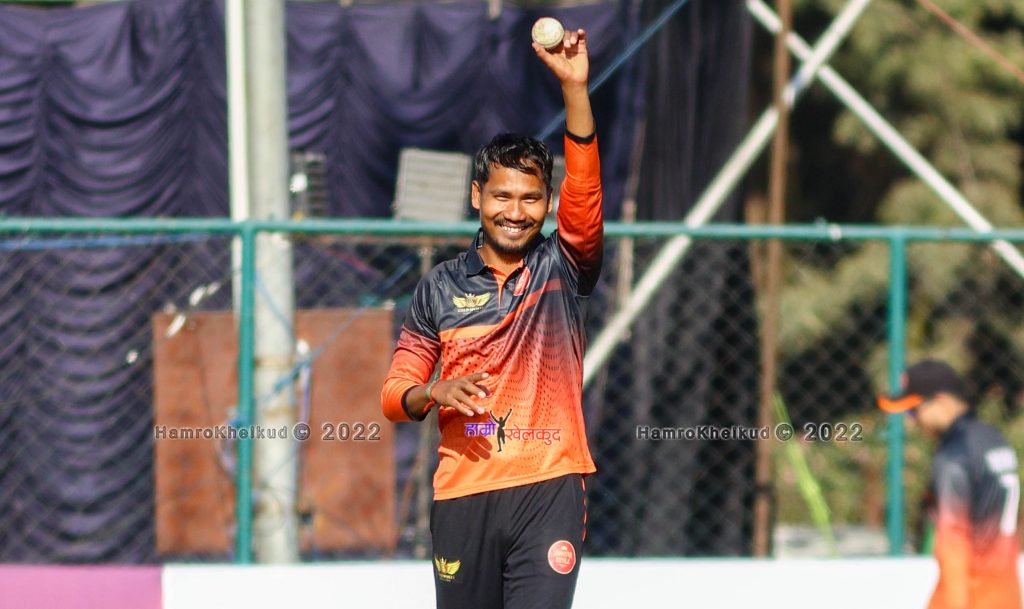 हुसेन तालत तेस्रो बलमा पवन सरार्फबाट २८ रनमा क्याच आउट भए । तालतले २१ बलमा ४ चौका हाने । एक बलपछि नन्दन यादव शून्यमै कट एण्ड बोल्ड आउट भए । विवेक यादव १० रनमा आउट भए ।