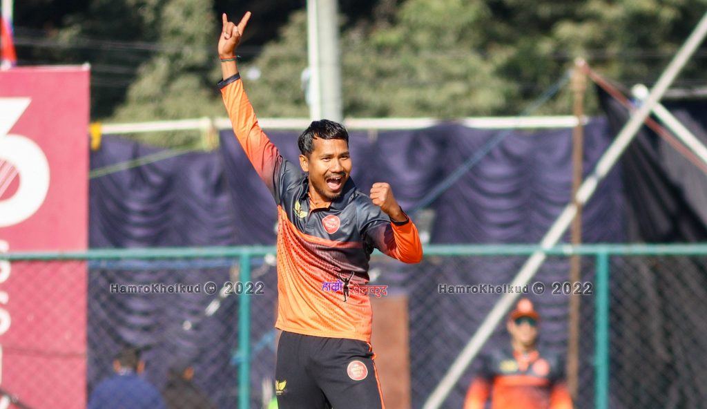 हुसेन तालत तेस्रो बलमा पवन सरार्फबाट २८ रनमा क्याच आउट भए । तालतले २१ बलमा ४ चौका हाने । एक बलपछि नन्दन यादव शून्यमै कट एण्ड बोल्ड आउट भए । विवेक यादव १० रनमा आउट भए ।