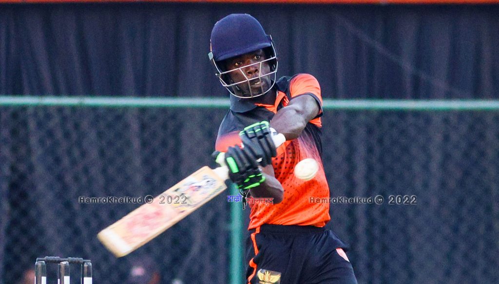 ओपनर सागर पुनलाई हुसेन तालतले ५ रनमा बोल्ड गरे । सन्दीप जोरा र राजेश पुलामी मगरलाई अर्जुन साउदले एक एक रनमा उत्कृष्ट रन आउट गर्दै दबाब बढाएका थिए । कप्तान ट्रभन ग्रिफिकले २१ बलमा ३ चौका र १ छक्कासहित २५ रन बटुले ।
