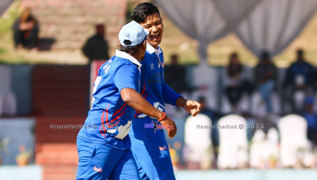 पहिलो खेल खेलका तीव्र गतिका बलर शड्ली भान सेक्किकले ४ ओभरमा २७ रन खर्चेर ३ विकेट लिए । किशोर महतोले ४ ओभरमा १ मेडनसहित २० रन खर्चेर २ विकेट लिए । गुलशन झाले ३ ओभरमा ४२ रन खर्चेर २ विकेट लिए । हरमीत सिंह र सागर ढकालले एक एक विकेट लिए ।