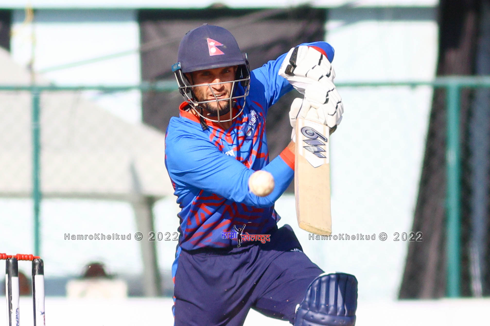 विरनदीप सिंह स्पिनर पवन सरार्फको बलमा एलबीडब्लू आउट भएपछि अर्धशतक बनाउन मात्रै एक रनले चुकेका थिए । लोकेश बम ८ बलमा २ चौका र १ छक्कासहित १५ रनमा बोल्ड भए । लोकेश सराफुद्दिन अशरफको बलमा बोल्ड भएका थिए ।