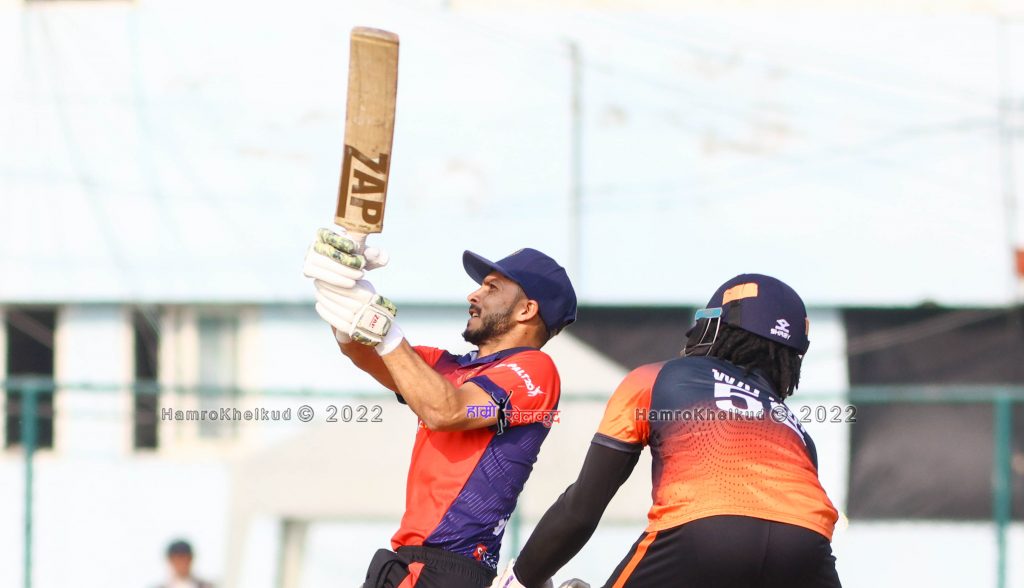 काठमाडौं (हाम्रो खेलकुद) – फार वेस्ट युनाइटेडका अलराउन्डरका करण केसीले नेपाल टि२० लिगमा विष्फोटक ब्याटिङ गरेपछि जनकपुर रोयल्सलाई १ सय ७० रनको प्रतिस्पर्धात्मक लक्ष्य दिएको छ ।