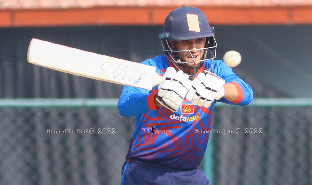 ओपनर लाहिरु मिलान्था १८ बलमा २ छक्कासहित २५ रनमा सुनाम गौतमको बलमा बोल्ड भए । अर्का ओपनर सुनिल धमला आजमतुल्लाह ओमरजाईको बलमा ३ रनमा बोल्ड भएका थिए । कुशल भुर्तेल अनिल खरेलको बलमा १९ रनमा एलबीडब्लू आउट भए । भुर्तेलले १६ बलमा ३ चौका हाने ।