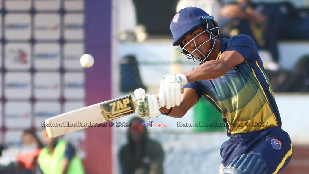 पृथु बाँंस्कोटा एक रनमा आउट हुँदा राज नान्नन १७ बलमा १ चौका र १ छक्कासहित २३ रनमा अविजित रहे ।