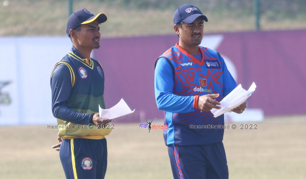 काठमाडौं डग आउट खाली जस्तै थियो । काठमाडौं प्रशिक्षक र म्यानेजर पहिला देखिनै विहिन थियो । डग आउटमा एकमात्रै फिजियो सागर पाण्डे थिए । अरु शून्य ।