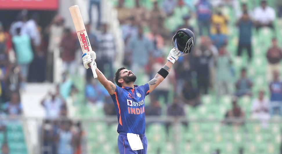 भारतका विराट कोहलीले १ सय १० बलमा १३ चौका र ८ छक्कासहित १ सय ६६ रनको सानदार शतकीय इनिङ खेले । कोहलीको यो ओडिआई करिअरको ४६ औं शतक हो । कोहलीले ८५ बलमा शतक पूरा गरेका थिए । शतकपछि कोहली झनै विष्फोटक बने ।