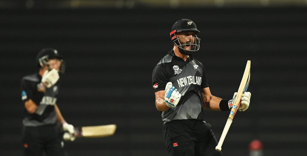 लगातार तीन छक्कापछि त्यसपछिको बलमा चौका हाने । अन्तिम ओभरको सुरुवाती तीन बलमा मात्रै २३ रन जोडेको थियो । यस ओभरमा कुल २७ रन जोड्यो । ओपनर डेभन कन्वे ३५ बलमा ७ चौका र १ छक्कासहित सर्वाधिक ५२ रनमा आउट भए । न्युजिल्यान्डलाई युवा ओपनर फिन एलेनले आक्रामक सुरुवात दिलाएका थिए । एलेन २३ बलमा ४ चौका र २ छक्कासहित ३५ रनमा क्याच आउट भए ।