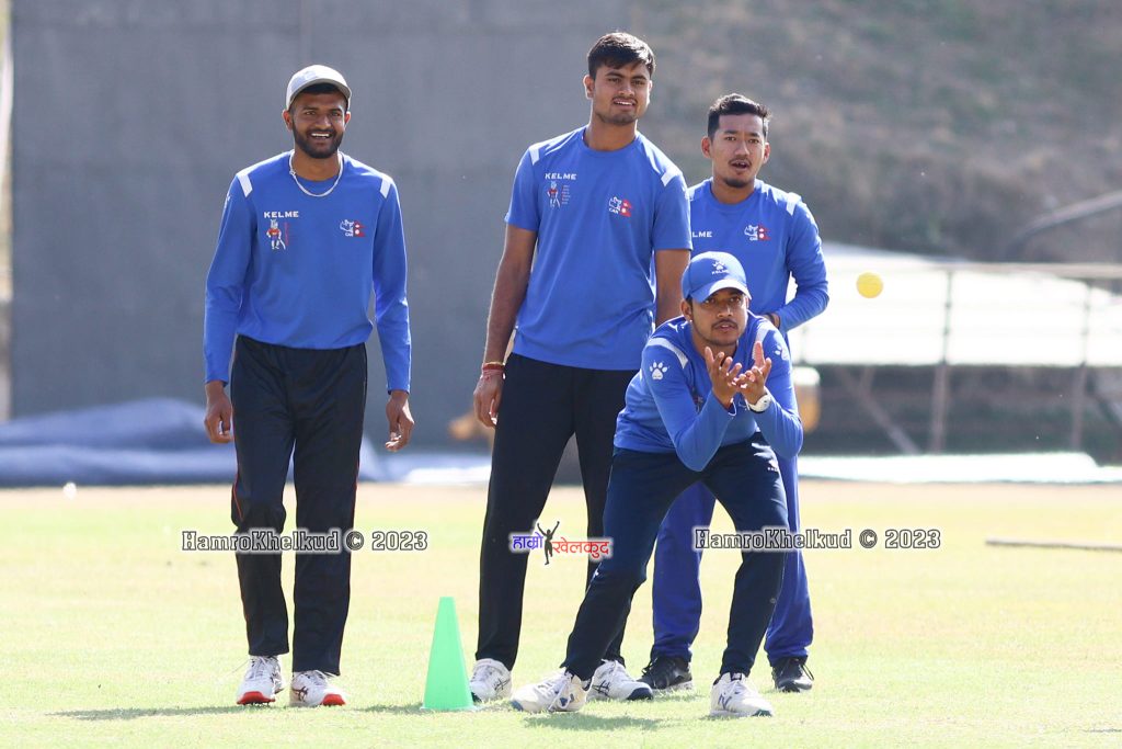 रोहित पौडेल (कप्तान), कुशल भुर्तेल, आसिफ शेख, ज्ञानेन्द्र मल्ल, कुशल मल्ल, दीपेन्द्रसिंह ऐरी, सन्दीप जोरा, सोमपाल कामी, करण केसी, ललितनारायण राजवंशी, सन्दीप लामिछाने, गुलशन झा, भीम सार्की र सूर्य तामाङ ।