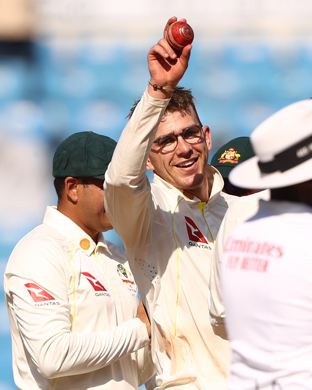 अष्ट्रेलिया स्पिनर टोड मर्फीले ४७ ओभरमा १२ मेडन राख्दै १ सय २४ रन खर्चेर ७ विकेट लिए । कप्तान प्याट कमिन्सले दुई र नाथन लायनले एक विकेट लिए ।