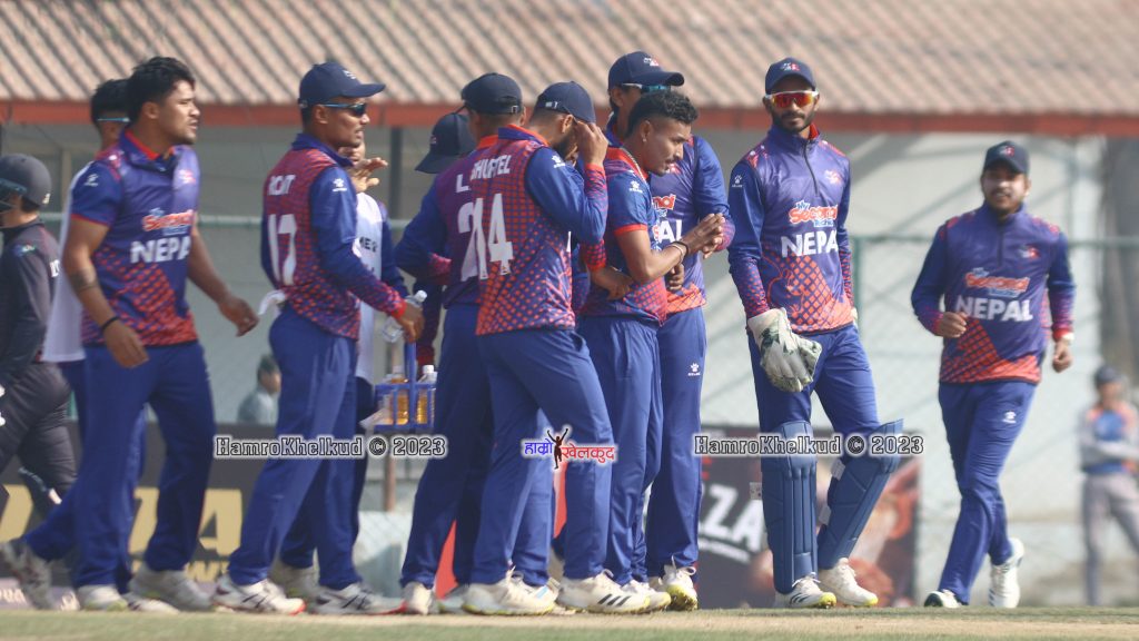 आसिफ शेख (विकेटकिपर), कुशल भुर्तेल, ज्ञानेन्द्र मल्ल, रोहित पौडेल (कप्तान), दीपेन्द्रसिंह ऐरी, कुशल मल्ल, सन्दीप जोरा, सोमपाल कामी, करण केसी, सन्दीप लामिछाने र ललितनारायण राजवंशी ।