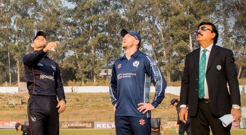 काठमाडौं (हाम्रो खेलकुद) – स्कटल्यान्डले आइसिसी विश्वकप लिग–२ त्रिकोणात्मक ओडिआई सिरिज अन्तर्गत नामिबियाविरुद्ध टस जितेर पहिला फिल्डिङ गर्ने निर्णय लिएको छ । टियु क्रिकेट मैदानमा भएको टसमा स्कटल्यान्डका कप्तान रिची बेरिंगटनले जितेर पहिला फिल्डिङ गर्ने निर्णय लिएका छन् ।