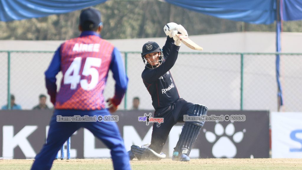 रोहित पौडेल (कप्तान), कुशल भुर्तेल, आसिफ शेख (विकेटकिपर), ज्ञानेन्द्र मल्ल, कुशल मल्ल, दीपेन्द्रसिंह ऐरी, सन्दीप जोरा, सोमपाल कामी, करण केसी, सन्दीप लामिछाने र गुलशन झा ।