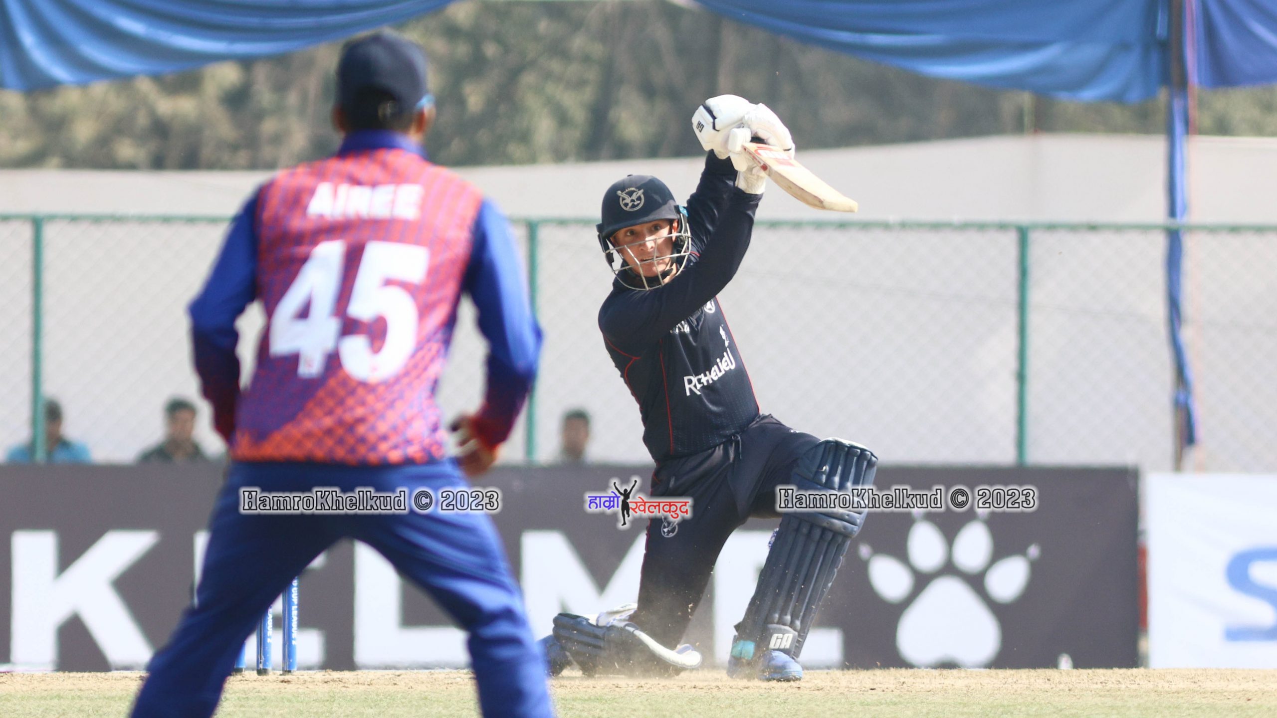 ओपनर कार्ल ब्रिकेनस्टक २० रनमा फस्ट स्लिपमा ज्ञानेन्द्र मल्लबाट क्याच आउट भए । सन्दीपले १५ औं ओभरको तेस्रो बलमा क्याच गराउँदै नेपाललाई पहिलो सफलता दिलाएका हुन् । सन्दीपले १७ औं ओभरको पाँचौं बलमा लरेन्सलाई बोल्ड गर्दै दोस्रो सफलता दिलाएका हुन् ।
