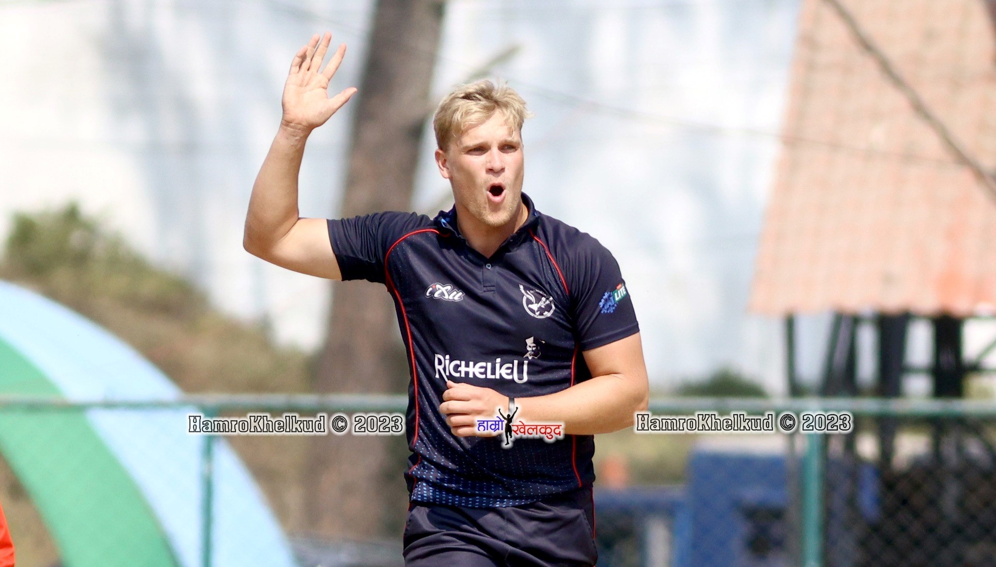 काठमाडौं(हाम्रो खेलकुद) – आइसिसी विश्वकप लिग–२ त्रिकोणात्मक ओडिआई सिरिजमा नामिबियाका तीव्र गतिका बलर रुबेन ट्रम्पलम्यान स्कटल्यान्डविरुद्ध हारको बाबजुद प्लेयर अफ द म्याच चुनिएका छन् । कमजोर ब्याटिङका कारण नामिबिया नेपाल भ्रमणमा अन्तिम खेलमा स्कटल्यान्डसँग ४३ रनले पराजित हुन पुग्यो ।