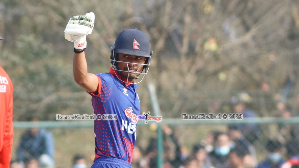 काठमाडौं (हाम्रो खेलकुद) – नेपालका कप्तान रोहित पौडेलले आइसिसी विश्वकप लिग–२ त्रिकोणात्मक ओडिआई सिरिजमा स्कटल्यान्डले दिएको मध्यम विजयी लक्ष्य पछ्याउनेक्रममा अर्धशतक पूरा गरेका छन् । रोहितले ५४ बलमा ४ चौका र २ छक्कासहित अर्धशतक पूरा गरेका छन् ।