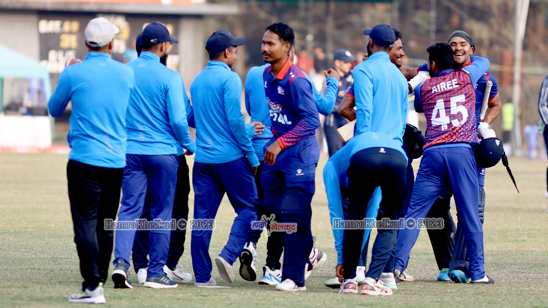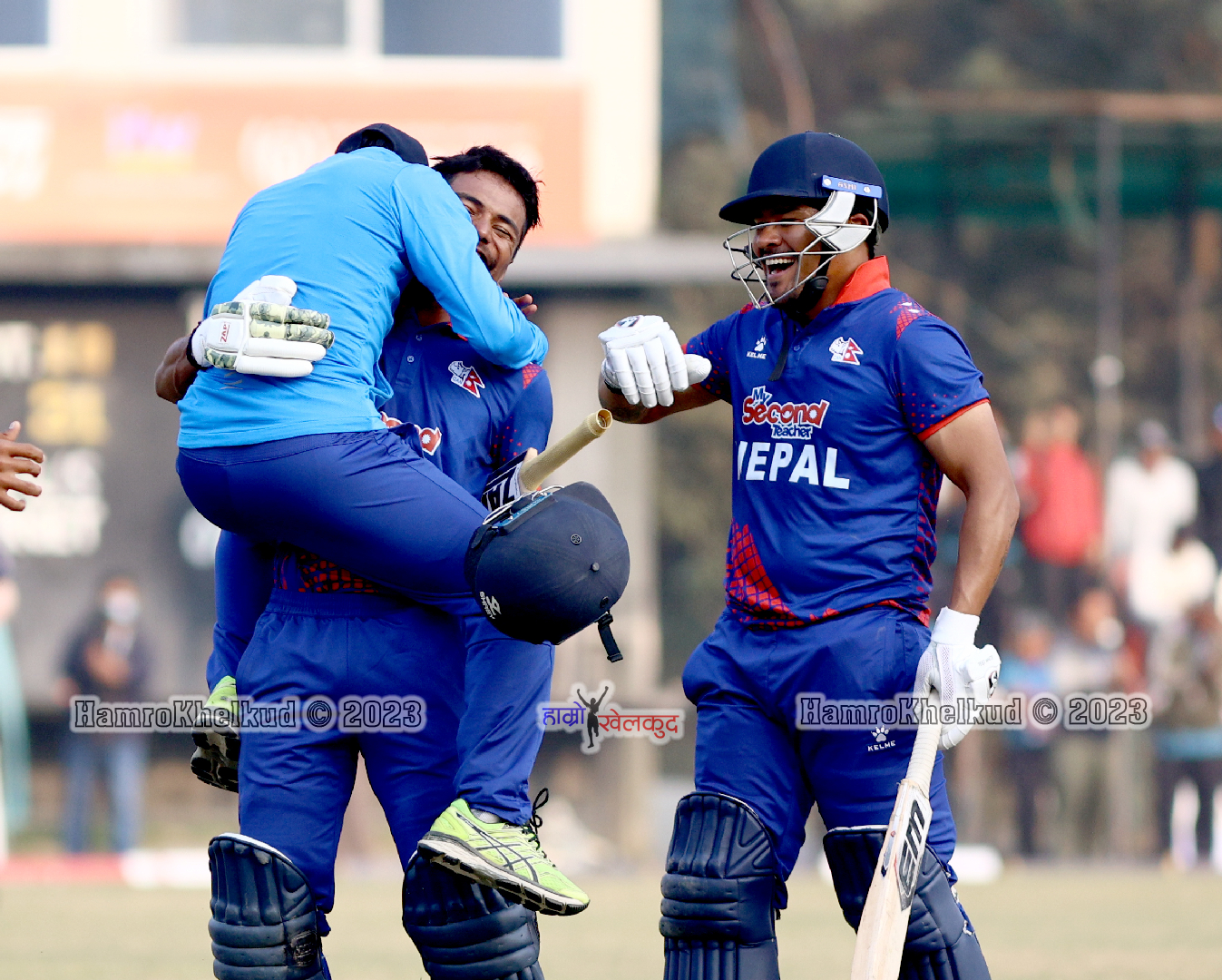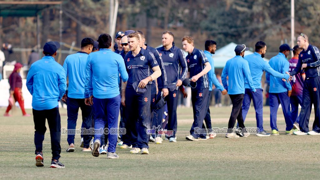 कप्तान रोहित पौडेल र करण केसीको उत्कृष्ट ब्याटिङमा नेपालले आइसिसी विश्वकप लिग–२ त्रिकोणात्मक ओडिआई सिरिजमा च्याम्पियन स्कटल्यान्डमाथि दुई विकेटको रोमान्चक जित हात पारेको छ । योसँगै नेपालले विश्वकप लिग २ मा पहिलो पटक सबै चार खेल जित्न सफल भएको छ ।