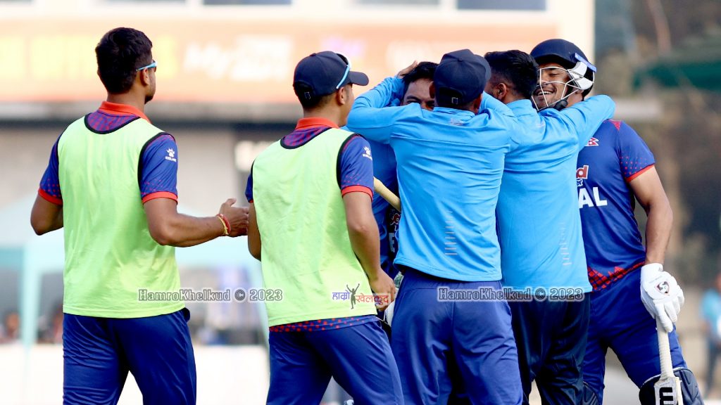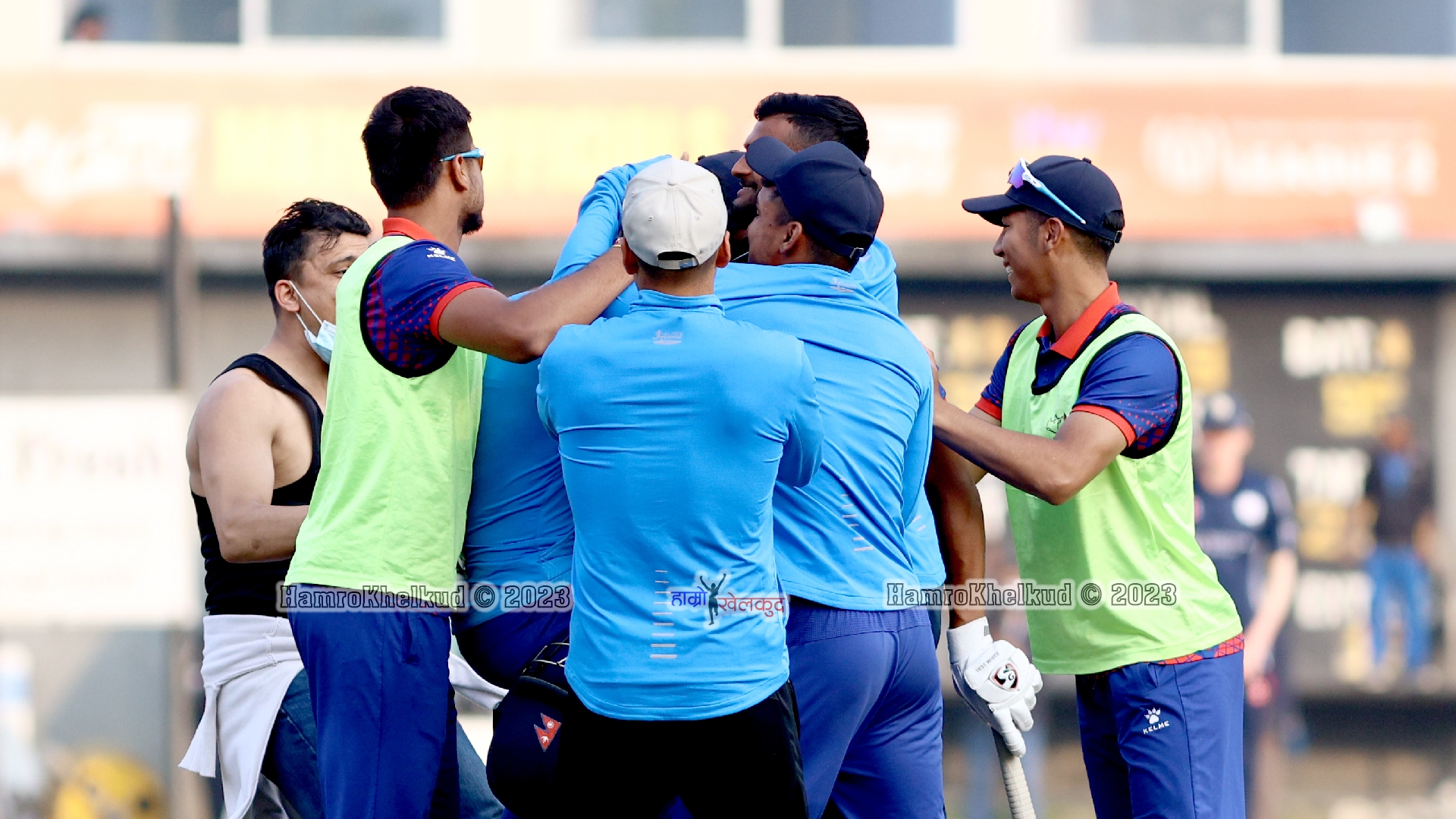 विजयी रन प्रहार गरेपछि कप्तान रोहित र करणसँग नेपाली टोलीले मनाएको खुसियाली फोटो पत्रकार उत्सव शाक्यले यसरी कैद गरेका छन् :