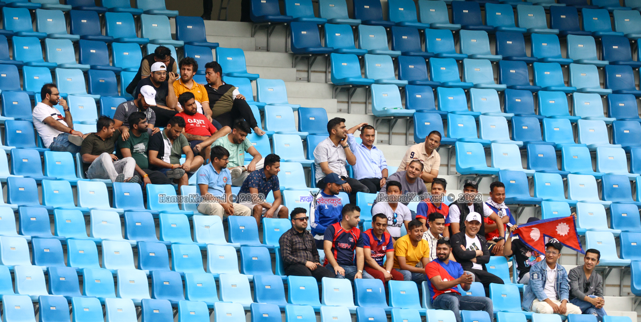 सुरुवातमा नेपाली समर्थकलाई मैदान प्रवेश गर्न दिएको थिएन । पिच साइडिङ डरको कारण सुरुवातमा आयोजकले नेपाली दर्शकलाई मैदान प्रवेशमा रोक लगाएको थियो । तर पछि एन्टि करप्सन युनिटसँगको छलफलपछि नेपाली समर्थकले मैदान छिर्न पाएका हुन् । सुरुवाती १५ ओभर पछि मात्रै नेपाली दर्शक मैदान छिर्न पाएका थिए ।
