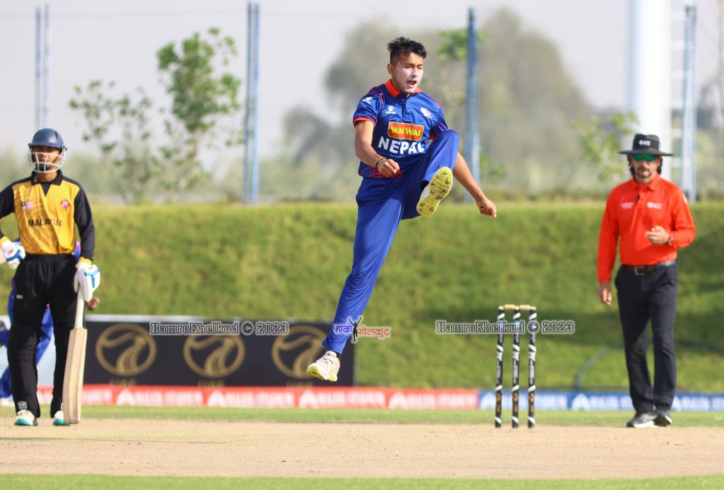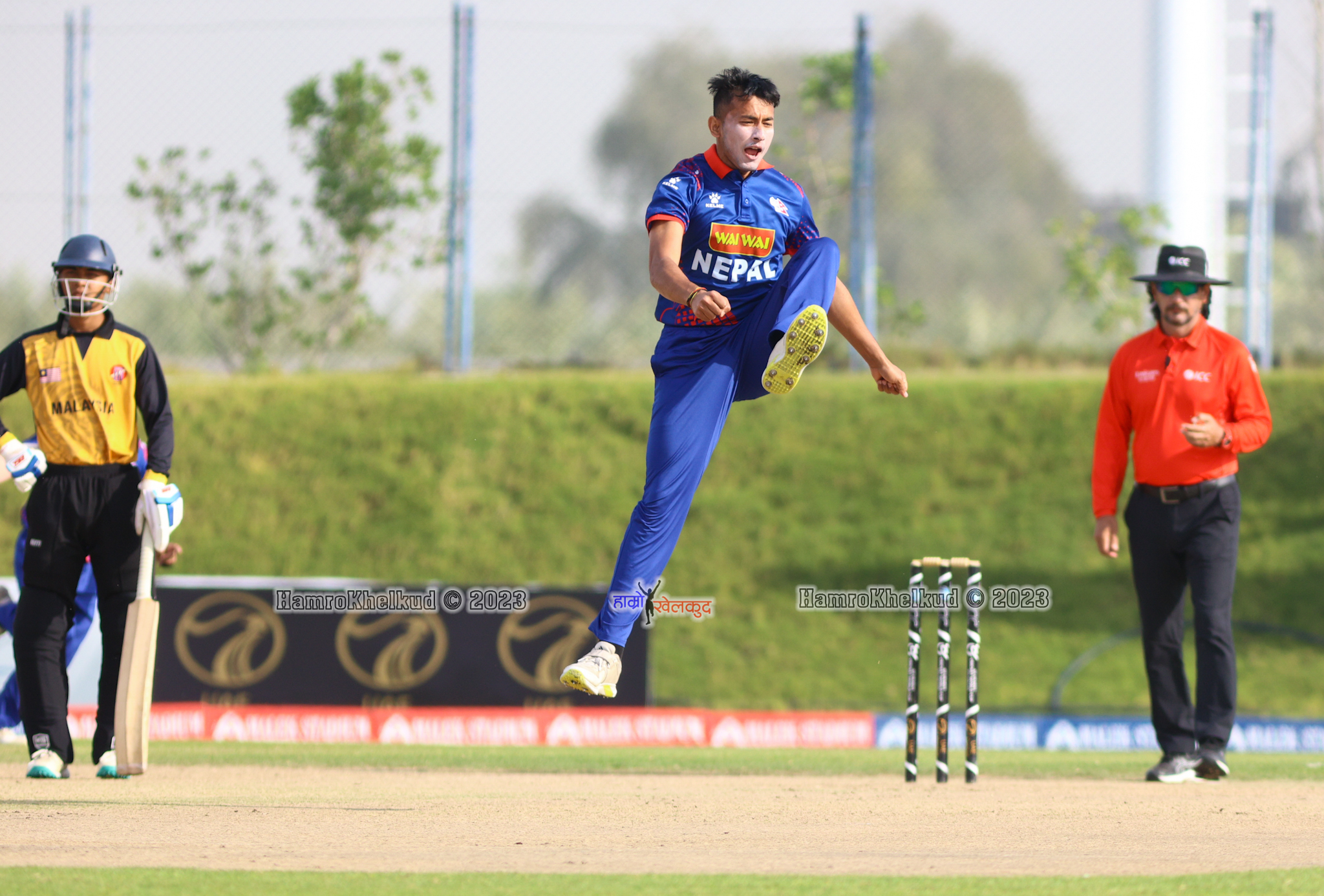 मोहम्मद अकरम मलेल ५१ बलमा ३ चौकासहित २६ रनमा क्याच आउट भए । उनी स्पिनर दीपेश कँडेलको बलमा ठूलो सट खेल्ने धुनमा लङअनमा विशाल विक्रम केसीबाट क्याच आउट भएका थिए । मोहम्मद आलिफ शमासुल बहरिन २८ बल खेल्दै ४ रनमा दीपेश कँडेलबाट कट एड बोल्ड आउट भए ।