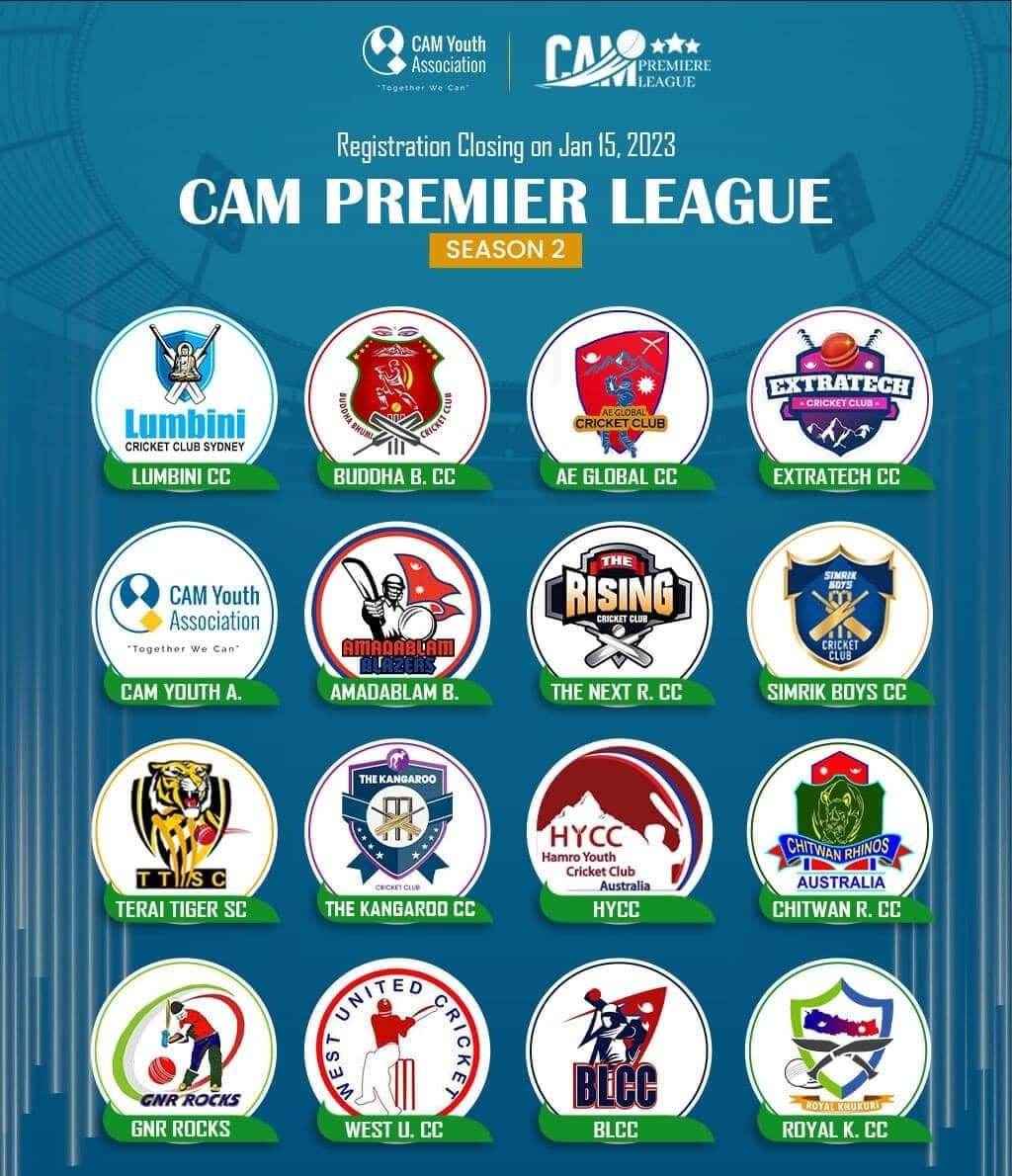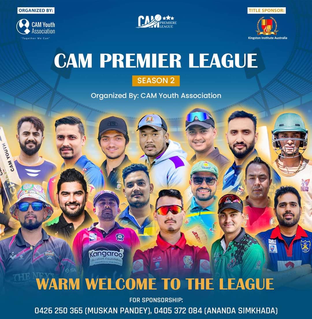 काठमाडौं (हाम्रो खेलकुद)– अष्ट्रेलियाको सिड्नीमा नेपाली समुदायको बीचमा क्याम प्रिमियर लिग अष्ट्रेलियाको सिड्नीमा नेपाली समुदायको बीचमा क्याम प्रिमियर लिग आयोजना हुने भएको छ । प्रतियोगिताको यो दोस्रो संस्करण हो । क्याम प्रिमियर लिग यसपटक डे नाइटमा हुने बताइएको छ ।