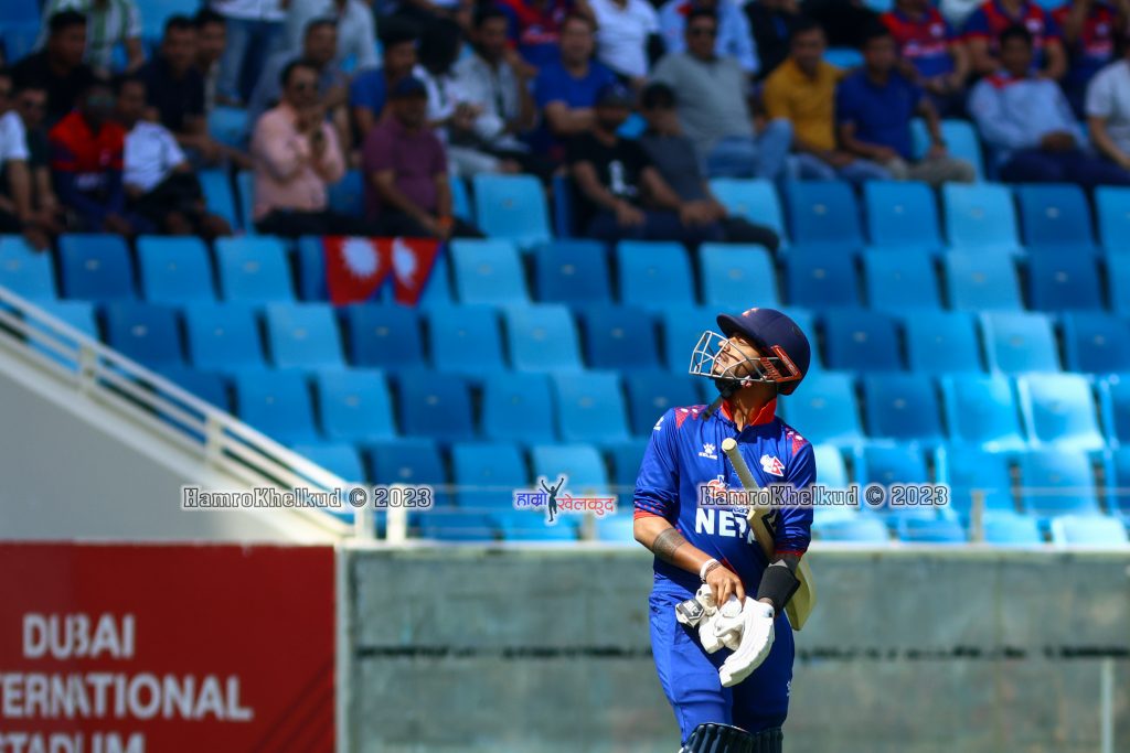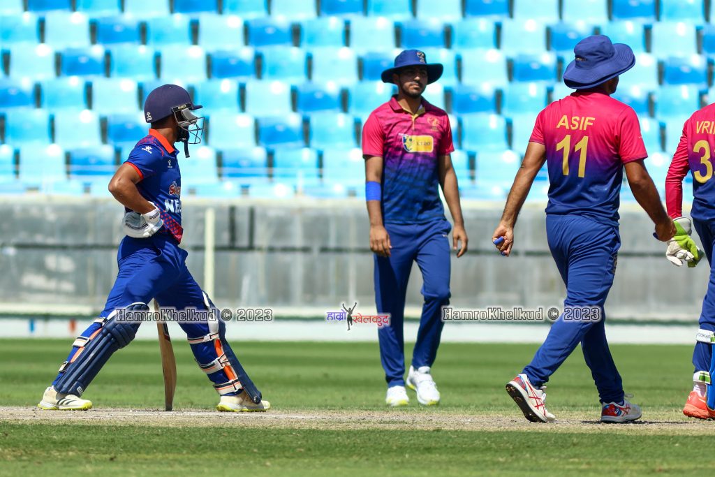 पहिलो खेलमा सन्दीपले युएईविरुद्ध २४ बलमा ४ चौकासहित २६ रनको अविजित इनिङ खेलेका थिए । त्यसैको कारण आज माथि ब्याटिङमा पठाएको हुनसक्छ । आरिफ शेख, प्रतिश जि.सी, सोमपाल कामी र करण केसी ब्याटिङको लागि आउन बाँकी छ ।