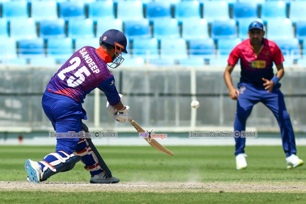 एक समय १०५–७ को अवस्थामा सन्दीपले आसिफसँग मिलेर जित पक्का गराएका थिए । सन्दीपले उक्त खेलमा ५० बलमा ३ चौकासहित ३५ रनमा अविजित रहेका थिए । सन्दीपले विजयी चौका प्रहार गरेका थिए ।