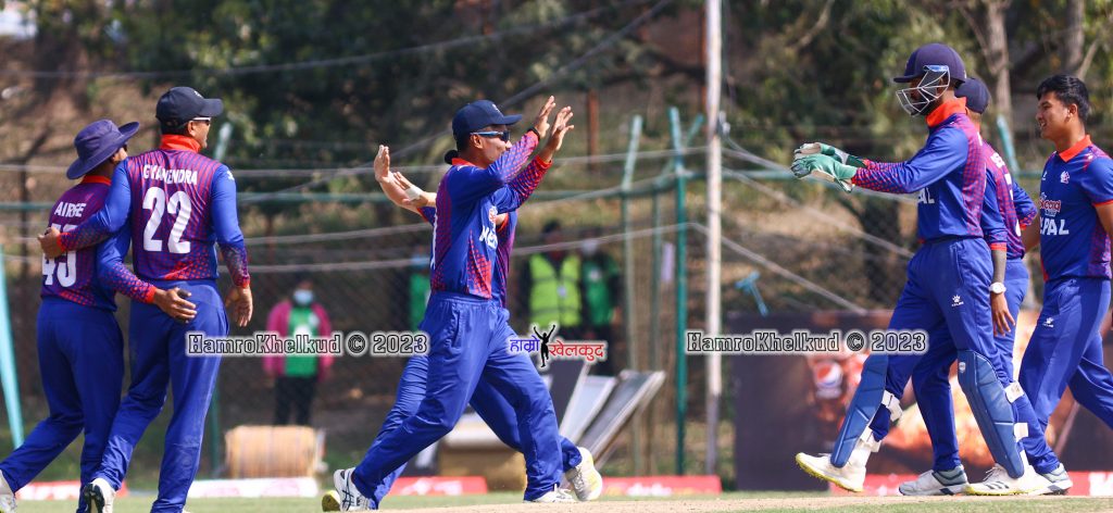 त्यसअघि टियु क्रिकेट मैदानमा टस हारेर पहिला ब्याटिङको निम्तो पाएको नेपाल ४९.१ ओभरमा २ सय ९७ रनमा अल आउट भयो । नेपालले यो आफ्नो ओडिआई इतिहासमा बनाएको सर्वाधिक उच्च योगफल हो । नेपालको ओडिआईमा उच्च योगफल यसअघि २ सय ८७ रन थियो । नामिबियाविरुद्ध दुई साताअघि नेपालले २ सय ८६ रनको विजयी लक्ष्य पछ्याउनेक्रममा २ सय ८७ रन बनाएको थियो ।