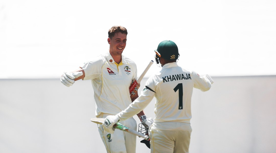 क्यामरन ग्रीन १ सय ७० बलमा १८ चौकासहित १ सय १४ रनमा आउट भए । ग्रीनको यो अन्तर्राष्ट्रिय कुनैपनि संरचनाको पहिलो शतक हो । पाँचौं विकेटका लागि ग्रीन र उस्मान खवाजाले २ सय ८ रनको सानदार दोहोरो शतकीय साझेदारी गरेका थिए ।