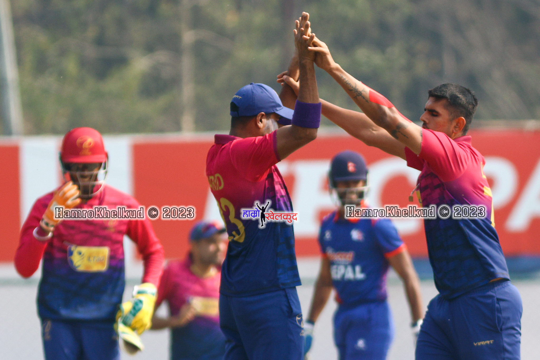 गुलशन झा ३२ बलमा १ चौका र ३ छक्कासहित ३७ रनमा आउट भए । गुलशन जहुर खानको योर्कर बलमा बोल्ड भएका थिए । दीपेन्द्रसिंह ऐरी १९ बलमा ३ चौका र २ छक्कासहित ३४ रनमा आउट भए ।