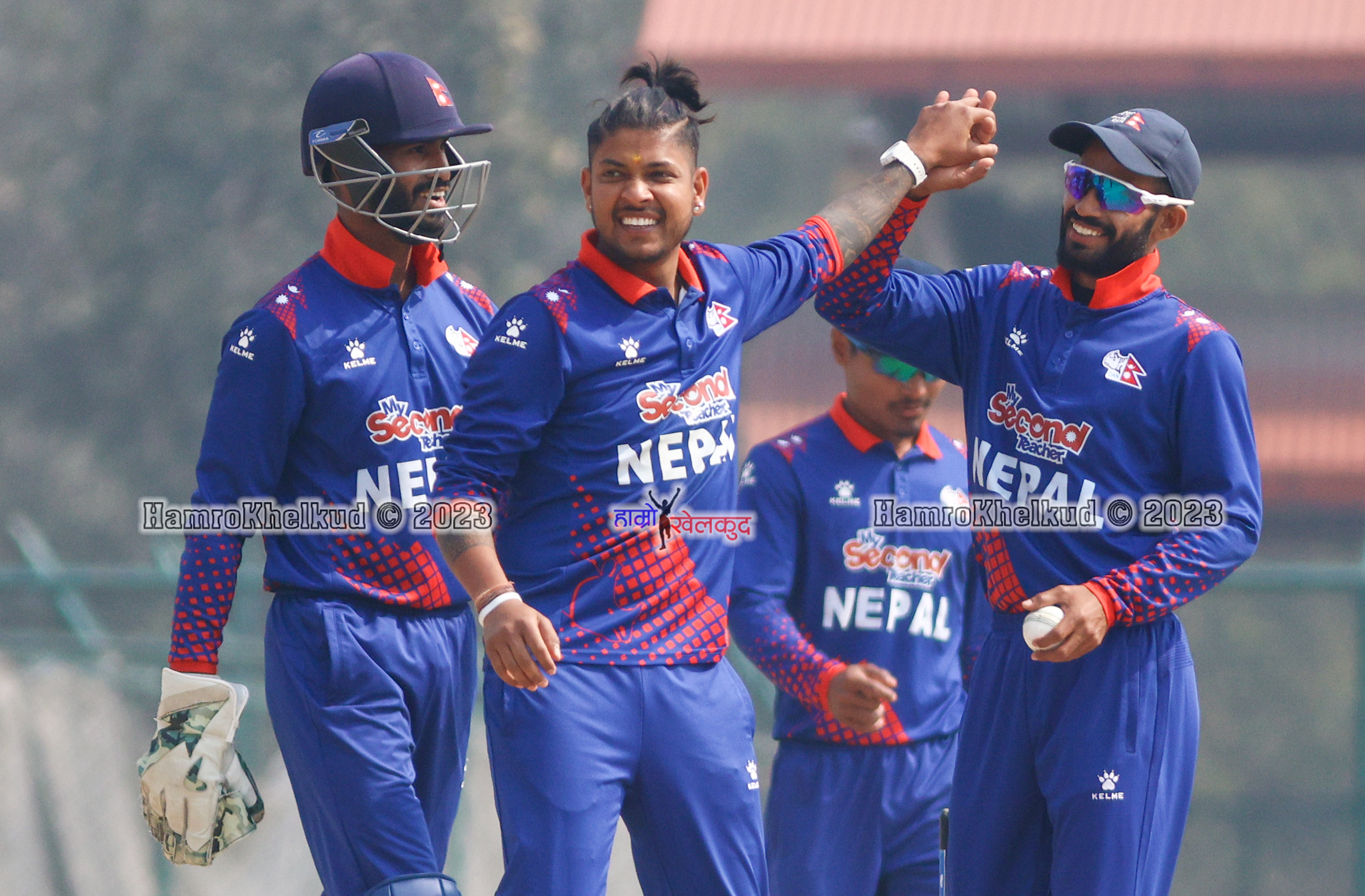 सन्दीपको २० औं ओभरको पहिलो बलमा ठूलो सट खेलेका कप्तान असद भाला डिप स्क्वायर लेगमा ललितनारायण राजवंशीबाट २० रनमा क्याच आउट भए । उनले ३१ बलमा २ चौका प्रहार गरे ।
