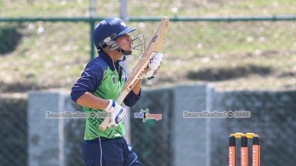कप्तान विन्दुले १४ बलमा ४ चौका प्रहार गरिन् । कृतिका मरासिनीले १२ औं ओभरको पहिलो बलमा रुबि पोदारलाई २८ रनमा क्याच गराइन् । उनले ३३ बलमा ४ चौका प्रहार गरिन् । रेवति धामी शून्यमा कृतिकाको बलमा एलबीडब्लू आउट भइन् ।