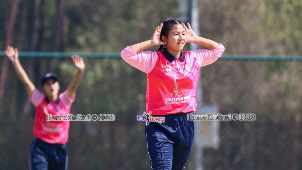 ललितपुरकी कृतिका मरासिनीले ४ ओभरमा १ मेडनसहित २४ रन खर्चेर २ विकेट लिइन् । सोनी पाख्रिनले ४ ओभरमा २८ रन खर्चेर १ विकेट लिइन् । कप्तान अस्मिना कर्माचार्यले ३ ओभरमा २० रन खर्चिन् । प्रतियोगितामा ५ टोली छन् ।