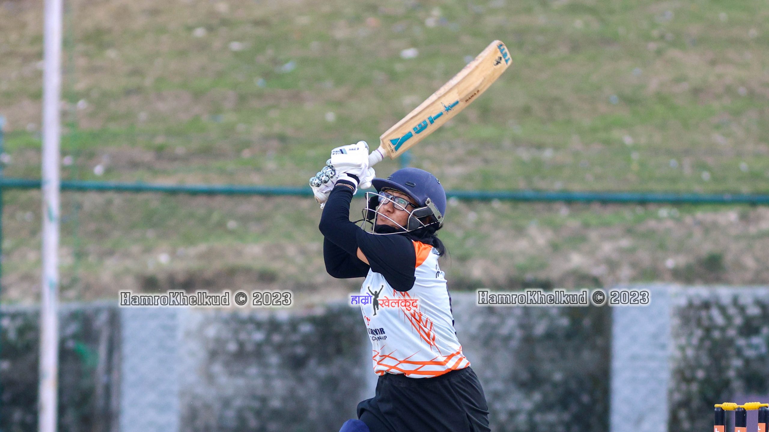 तीव्र गतिकी बलर रेखा रावलले पहिलो ओभरको पाँचौं बलमा ओपनर अनुराधा चौधरीलाई शून्यमा बोल्ड गरिन् । सोनी खड्काले चौथो ओभरको दोस्रो बलमा एलिसा यादवलाई एक रनमा बोल्ड गरिन् । एक बलपछि प्रतिमा साह शून्यमा एलबीडब्लू आउट भइन् ।