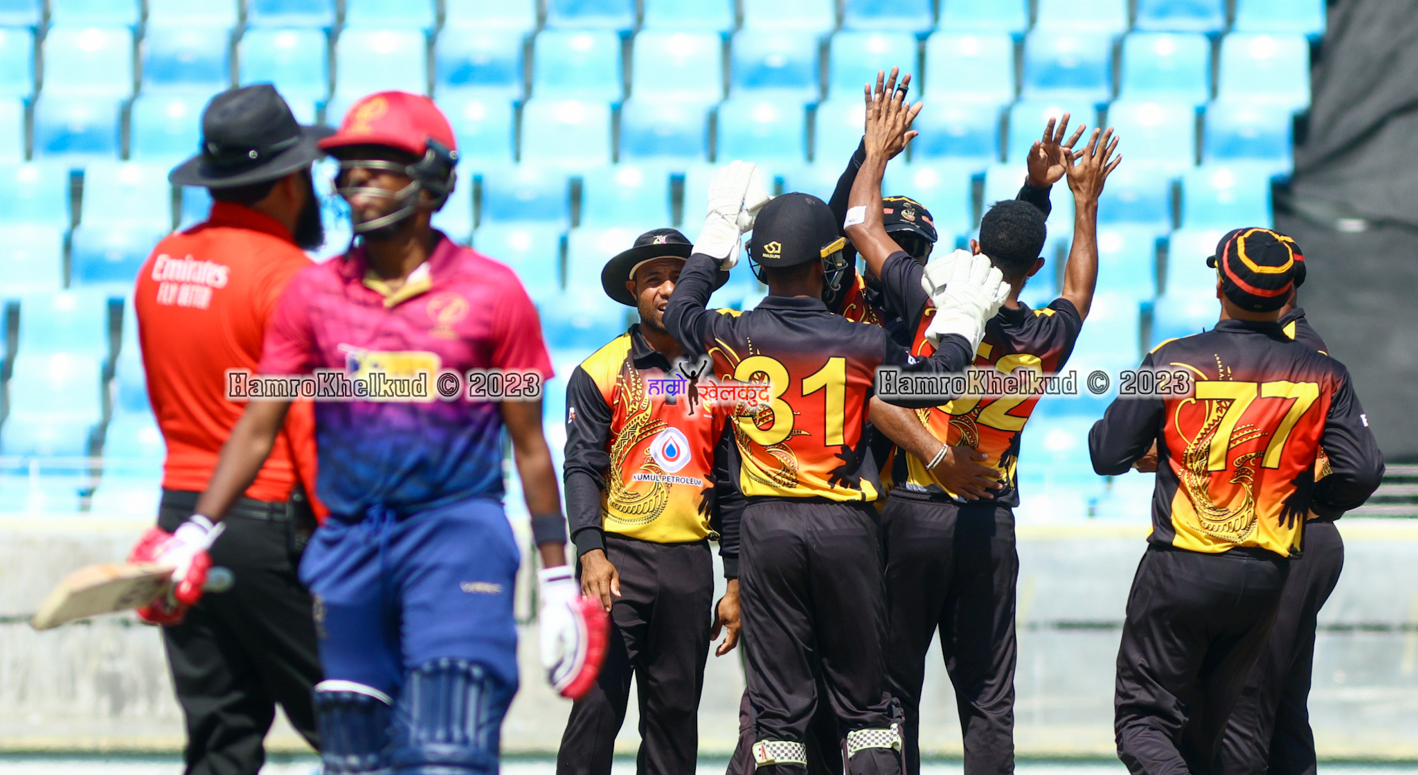 उता जर्सी र पपुवा न्युगिनी खेल्दैछन् । पपुवा न्युगिनीले नामिबियाले दिएको ३ सय ८२ रनको विशाल लक्ष्य पछ्याउनेक्रममा ३ सय ३३ रन बनाएको थियो । उक्त खेलमा चाल्स अमिनीले ७५ बलमा ८ चौका र ८ छक्कासहित सानदार शतकीय इनिङ खेलेका थिए । किप्लिङ डोरिगा ४७, सेसे बाउ ५४ र असाद भाला ५७ रनमा आउट भएका थिए ।