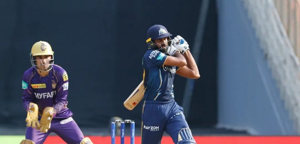 गुजरातलाई ओपनर शुभमन गिल र ऋद्धिमान शाहले ४.२ ओभरमा ३३ रन जोड्दै मध्यम सुरुवात दिलाएका थिए । स्पिनर सुनिल नारायणको बलमा नारायण जगदीशनले डिप मिडविकेटमा शाहको उत्कृष्ट क्याच लिएका थिए । उनले १७ बलमा ३ चौकासहित १७ रन बनाए ।