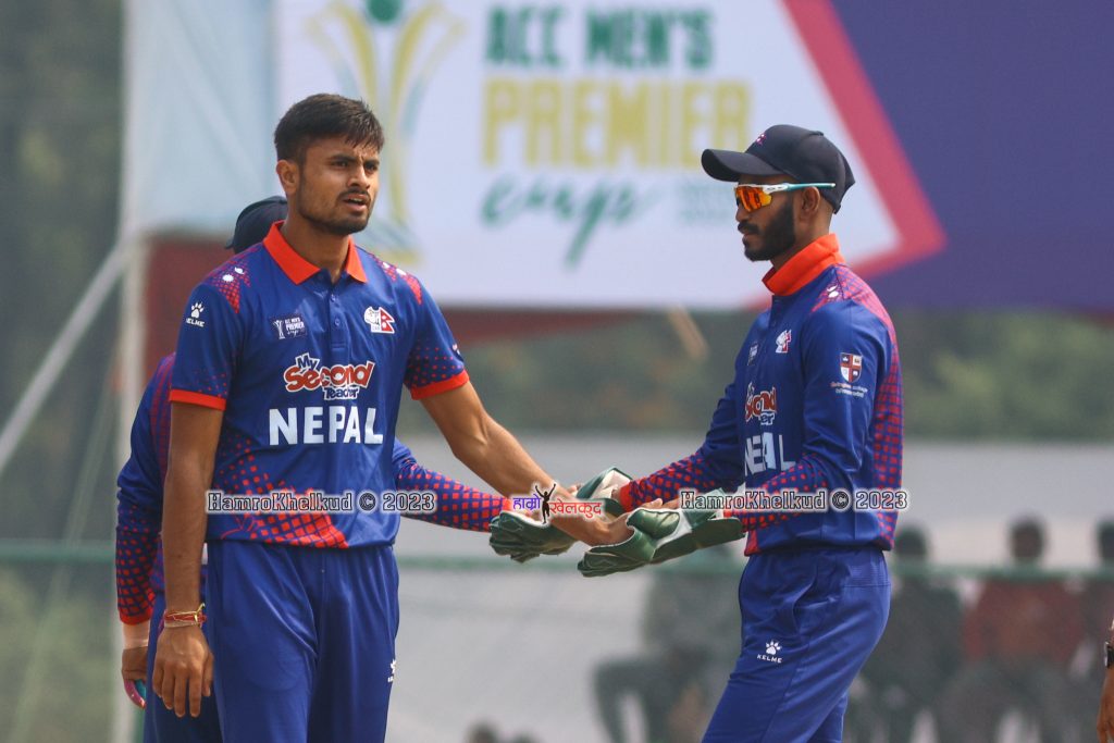 नेपालका सोमपाल कामीले ४ ओभरमा १४ रन खर्चिएका छन् । स्पिनर ललित राजवंशीले १ ओभरमा २ रन खर्चिएका छन् । गुलशन झाले ५ ओभरमा १ मेडनसहित ३३ रन खर्चेर १ विकेट लिए ।