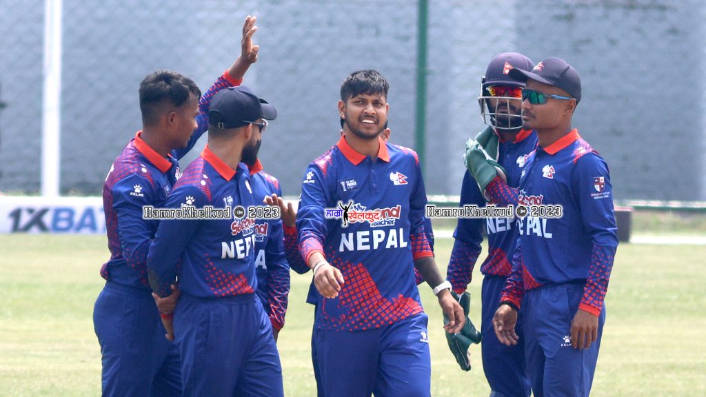 नेपालका तीव्र गतिका बलर सोमपाल कामीले ९ ओभरमा ४० रन खर्चेर सर्वाधिक ३ विकेट लिए । ललितनारायण राजवंशीले १० ओभरमा ३४ रन खर्चेर २ विकेट लिए ।