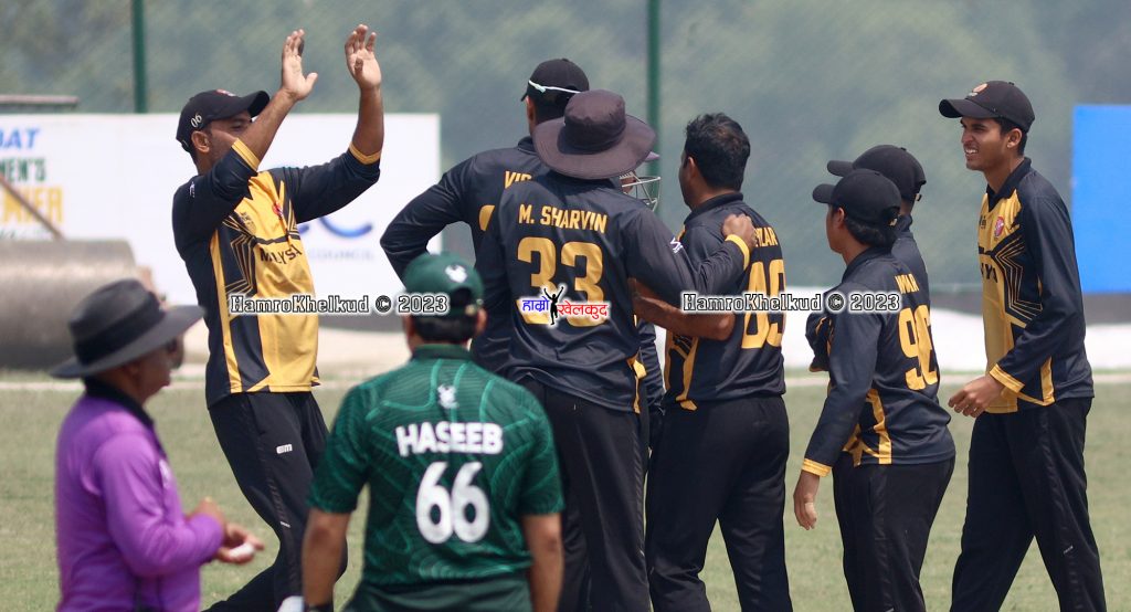 रिजवानकै बलमा साद खान एक रनमा अनवार रिजवानबाट क्याच आउट भए । त्यसपछि स्पिनरले साउदीलाई धरासयी बनाएका थिए । स्पिनर अनवार रहमानको बलमा मोहम्मद हसन शेख २१ रनमा विरनदीपबाट क्याच आउट भए । विरनदीपले ३७ बलमा २ चौकासहित २१ रन बनाए ।