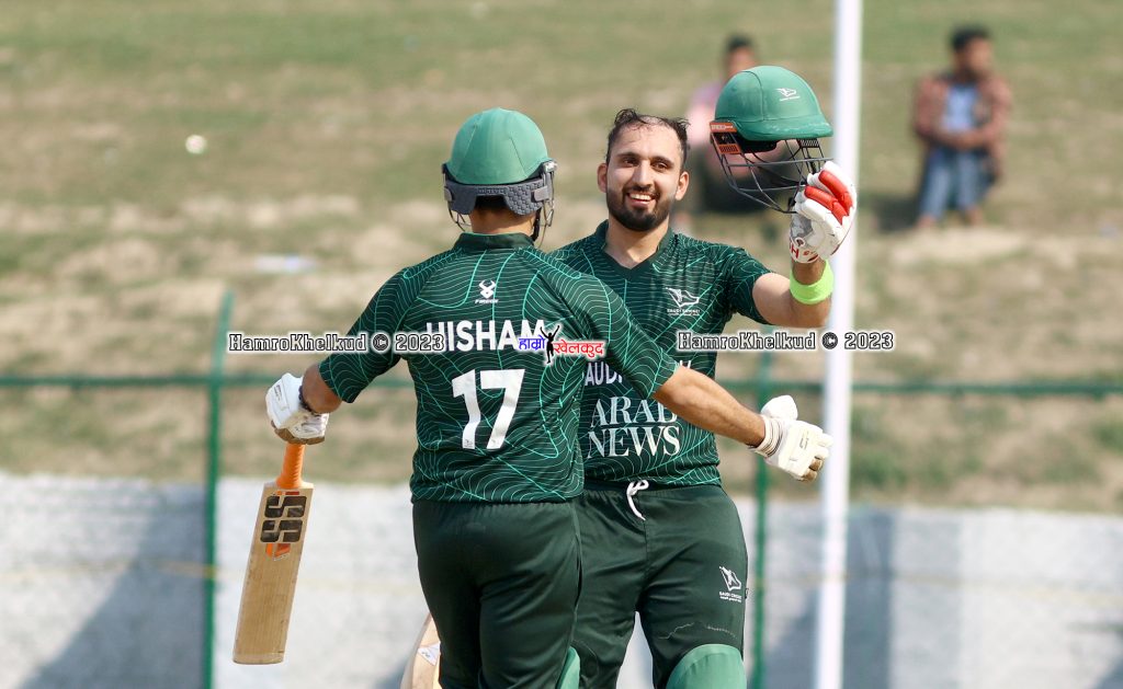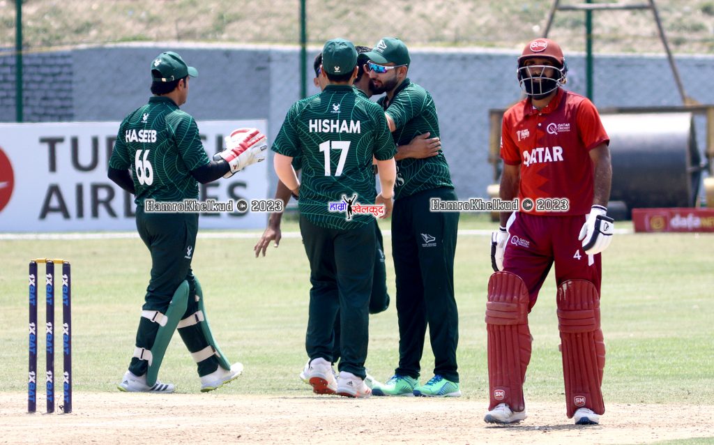 उल हसन ५५ बलमा ९ चौकासहित ५५ रनमा क्याच आउट भए । साद खान शून्यमा बोल्ड आउट भए । कप्तान हिशम शेख ३८ बलमा २ चौकासहित २१ रनमा अविजित रहे । कतारका इक्रमाउल्लाह खानले दुई विकेट लिए ।