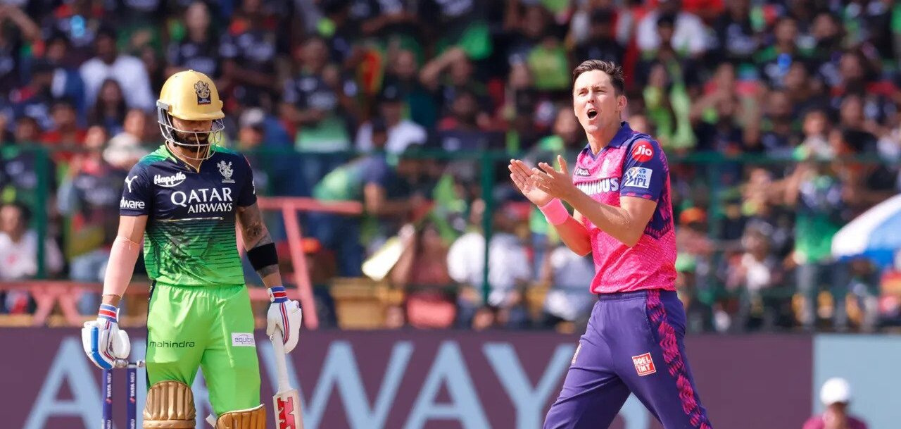 महिपाल लोमरोर ८, दीनेश कार्तिक १६, सुयश प्रभुदेशाई डक र वानिन्दु हसरंगा ६ रनमा रन आउट भए । कप्तान विराट कोहली भने ट्रेन्ट बोल्टको पहिलो ओभरको पहिलो बलमै एलबीडब्लू आउट भएका थिए ।