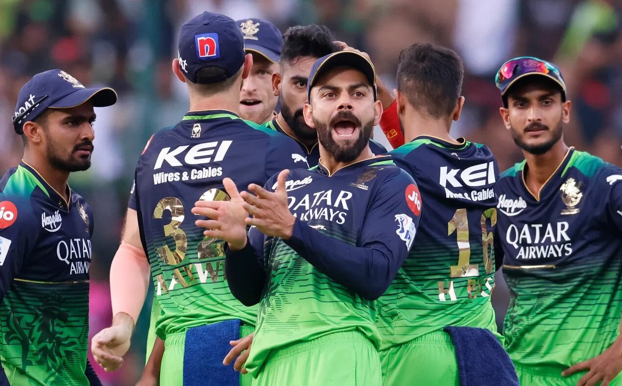 १४ औं ओभरको दोस्रो बलमा डु प्लेसिस यशस्वी जैसवालबाट रन आउट भए । त्यो समय बेंगलोर १३९९३ को अवस्थामा थियो । तर डु प्लेसिसको विकेटपछि लगातार मध्यक्रममा ब्याटरलाई गुमाउन पुग्यो । अर्को ओभरको अन्तिम बलमा म्याक्सवेल क्याच आउट भए ।