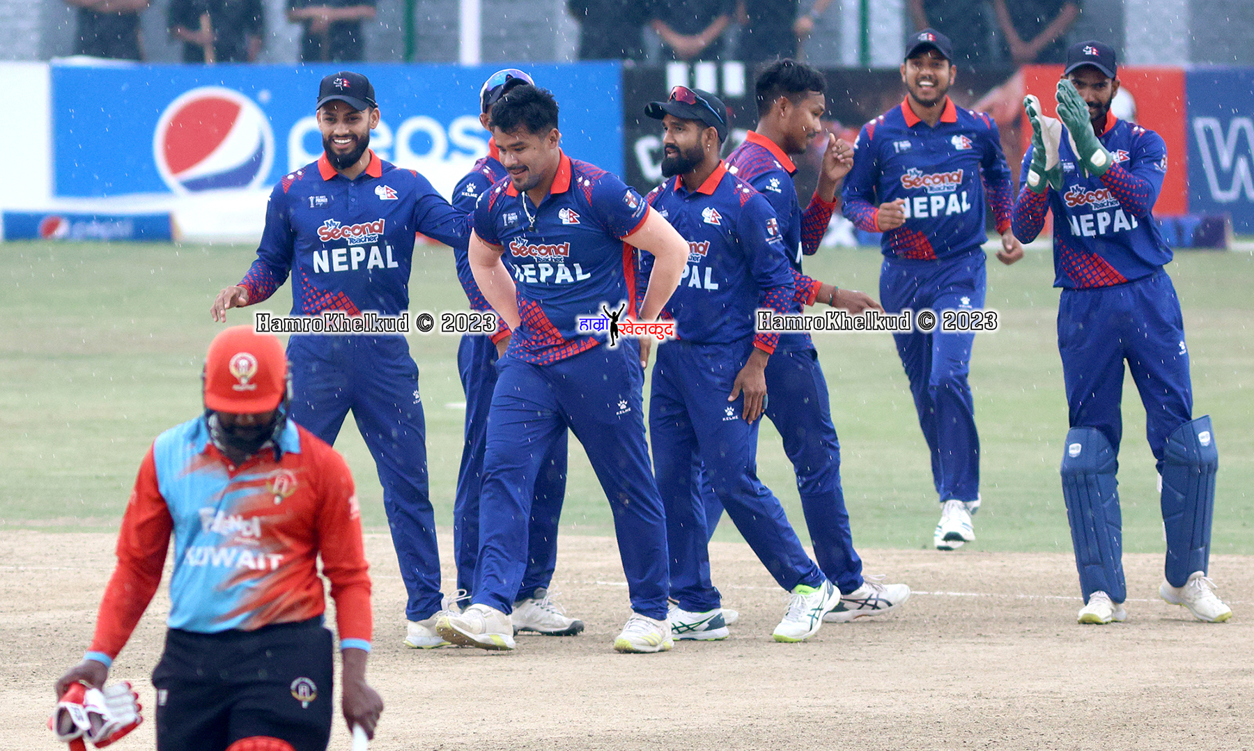 त्यसअघि टियु क्रिकेट मैदानमा टस हारेर पहिला ब्याटिङको निम्तो पाएको नेपालले निर्धारित ४२ ओभरमा ९ विकेट गुमाउँदै २ सय ८१ रन बनाएको थियो । निरन्तर वर्षाले प्रभावित खेलमा ८-८ ओभर घटाइएको थियो ।