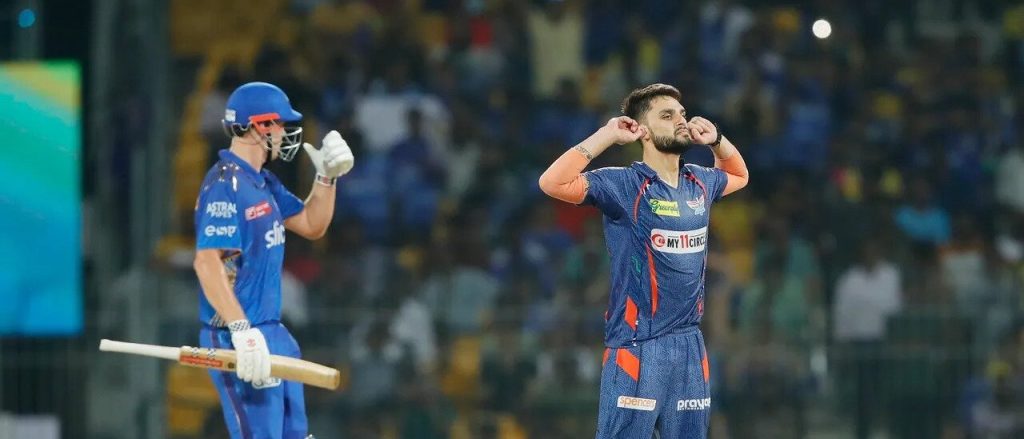 तेस्रो विकेटका लागि सूर्यकुमार यादव र क्यामरन ग्रीनले ३८ बलमा ६६ रनको साझेदारी गर्दै राम्रो योगफलको सम्भावना देखाएका थिए । तर नविनले ११ औं ओभरमा सूर्य र ग्रीन दुबैलाई आउट गरेपछि लखनऊ खेलमा फर्किएको थियो ।